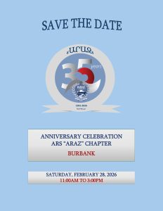 The 35th Anniversary Luncheon of the Araz Chapter will be held on Saturday, February 28, 2026.