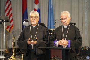 MCs Tenny Alaverdian and Jibid Melkonian, young but leading members of the ARS Sepan Chapter Executive, skillfully navigated the program, which featured national and ARS anthems sung by Varand, and invocation led by His Eminence Archbishop Moushegh Mardirossian, and accompanied by Rev. Fr. Ardag Demirjian.